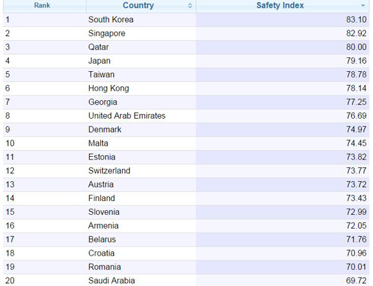 ちなみに、日本は57位となっている。韓国の「性犯罪者告知制度」制定は数もさることながら、 その質において子どもが標的になるという悪質なもので、対策が急がれていたという面がある。솔직하게, 한국이 위험한 나라라고 분류되면, 세계에 갈 수 있는 나라가 거의 없을 거야w 동남아 불가능 (절대 無理), 아프리카 불가능 (가장 無理), 미국 불가능 (총기 난사, 권총강도 등등), 남미 불가능 (권총강도), 유럽(소매치기, 인종차별범죄)