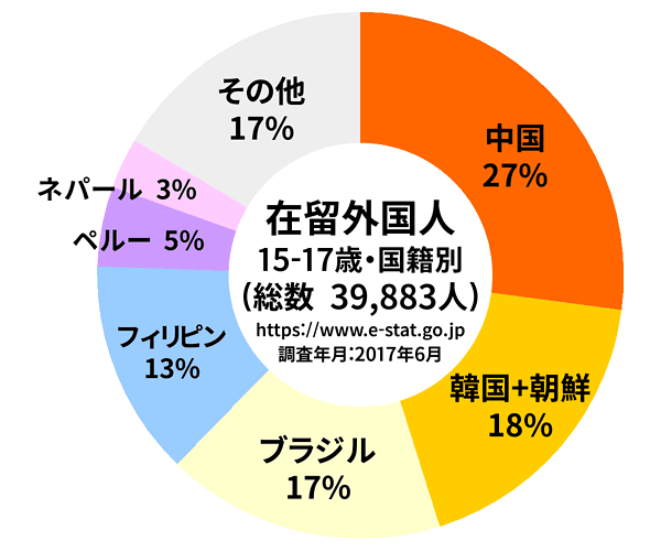 在留外国人・15~17歳・国籍別 - やっぱ朝鮮人は頭おかしい