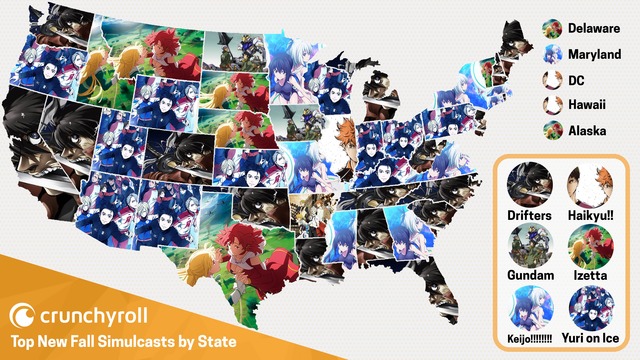 Crunchyroll調べによる、2016秋アニメ、州ごとの人気No.1。