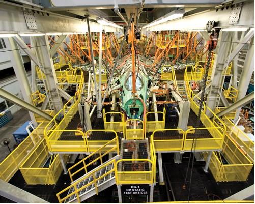 試作胴体や翼に油圧ポンプで圧力や振動を加えて、どこまで耐え