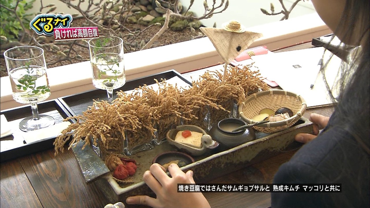 왼쪽 위는, 잘 보이지 않지만, 현대화된 한식집의 한 메뉴가 아닐까? 오른쪽 아래는 무엇인지 전혀 모르겠네요. 특정 가게의 개발 메뉴로 추측할뿐...2012年3月22日放送日本テレビ「ぐるナイ韓国ゴチ!No.1俳優&美女の弾丸スペシャル!!」