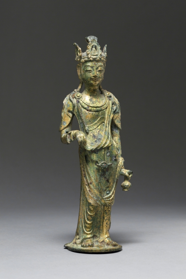 7世紀前半に作られたと推定されるが仏像は高さ28 cmで、頭に保管を書いて左手に歩兵を持った観音菩薩が堂々と立っている姿を形象化している。印字笑顔を帯びた表情、肩・腰などを軽くひねった姿勢、千のをひきビーズ(永楽)をかけた姿などが完璧な調和と美感を示す。学界では国宝78号・83号半跏思惟像、国宝287号百済金銅大香炉に匹敵する贅沢に評価している。