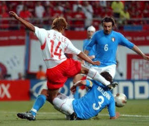 同点のまま延長戦に突入した試合。FWアン・ジョンファンがゴールデンゴールを決め、地元で大金星を挙げた。しかし、記事では「エクアドル人の審判バイロン・モレノはイタリアにPKを与えず、オフサイドの判定でゴールを認めず、フランチェスコ・トッティをシミュレーションと判断し、2枚目のイエローカードを提示して退場させた」と指摘している。