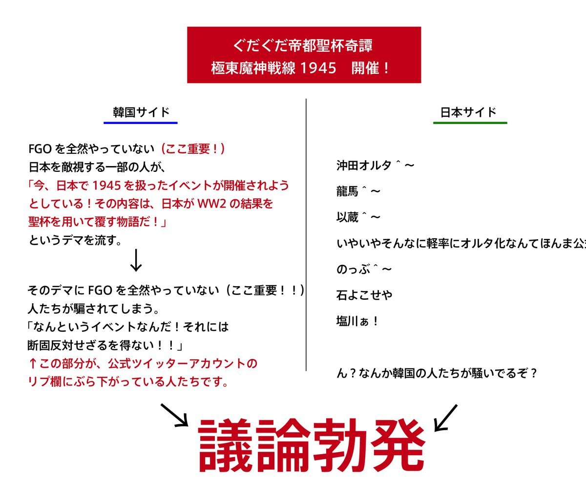 戦犯国じゃなくて 敗戦国ね。この様子だとFGOって韓国では全く流行っていなくて、