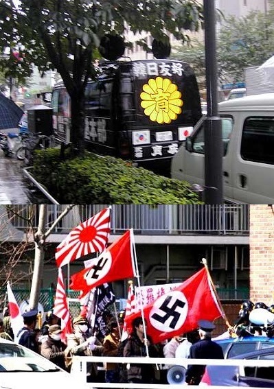 町中に大音量の軍歌を流して迷惑を掛ける街宣右翼や旭日旗と一緒にナチス旗を掲げている似非右翼も日本の保守を貶める行為にすぎない。>>31