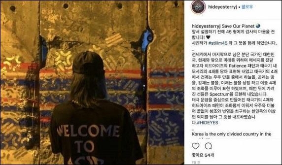 グラフィティアーティストジョンテヨン(28)氏は8日、本人のインスタグラムにソウル中区清渓2ベルリン広場に設置されたベルリンの壁にスプレーで絵を描く自分の姿を写した写真を上げた。チョン氏は記事に「世界で最後に残った分断国家である大韓民国の現在と今後の将来のためにメッセージを伝達しようとした」とし「宇宙とともに延々と創造と繁栄を希求する韓民族の以上の意味を込めて、その意味を内包した"と書いた。