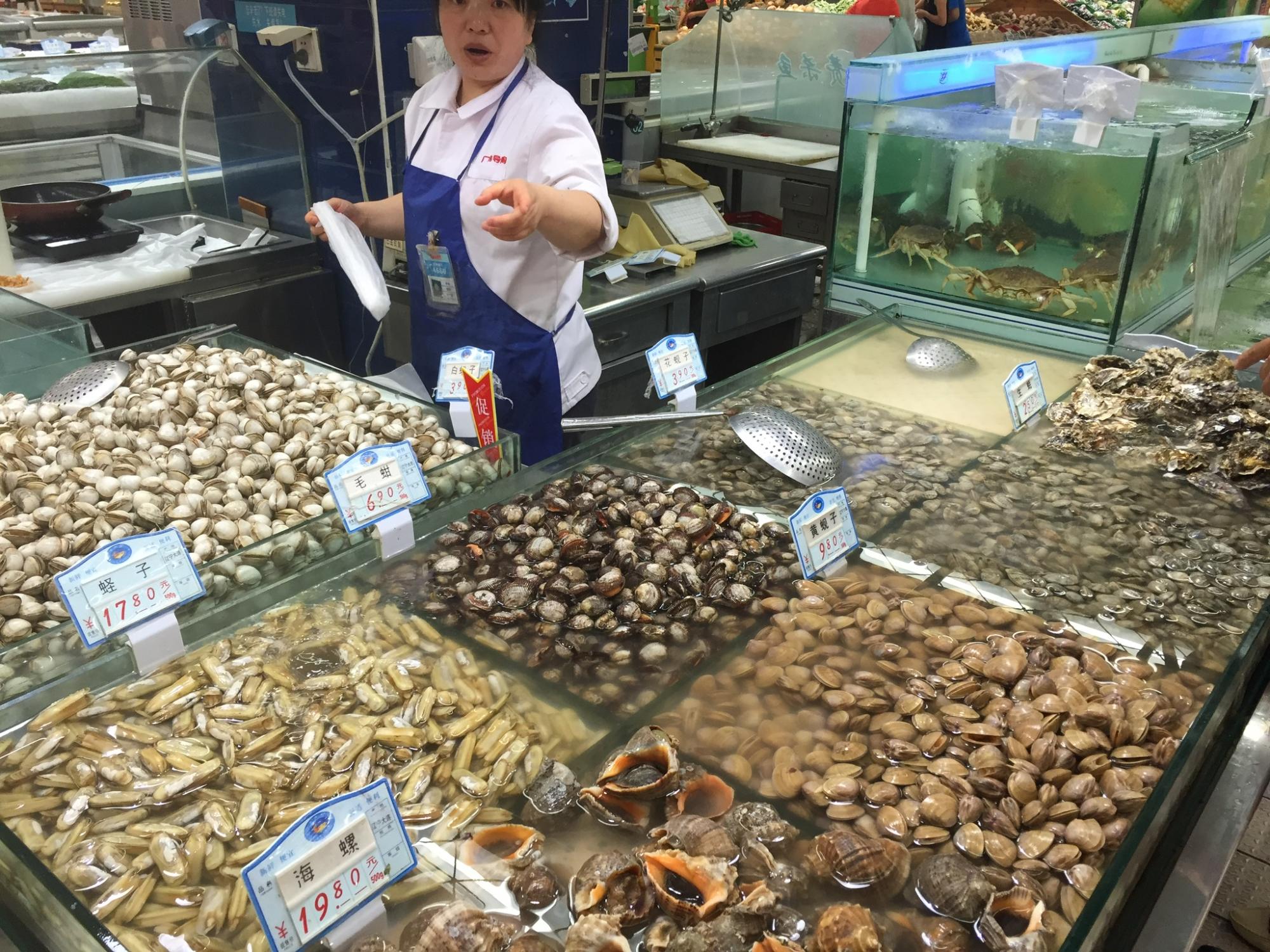 おまけに普通のスーパーなのに貝類の専門店さえある。