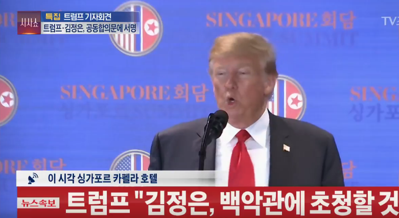 トランプ氏「5万人もの素晴らしい兵士がいる。拉致についても話し合った。これは安倍首相にとって非核化に次ぐ問題である。北朝鮮は拉致問題についても文書には含まれていないが取り組む予定だ。」