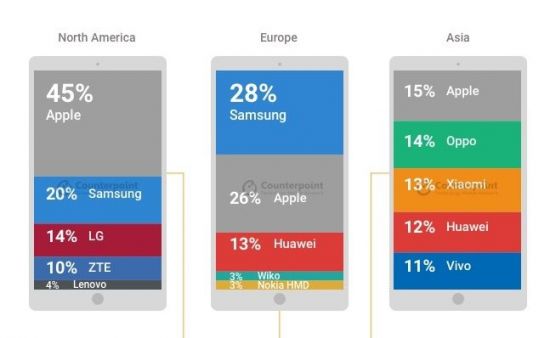朝鮮に技術があるならば、技術が何もない中国が突然、朝鮮を追い越すなんて無理だよ。2018년 1분기 세계 스마트폰 점유율