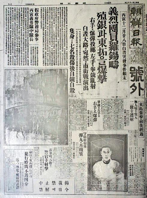 見出し「義烈団員の羅錫疇 殖銀(朝鮮殖産銀行)と東拓(東洋拓殖株式会社)を爆撃」