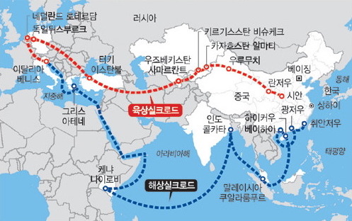 중국은 미국의 해군력 때문에 패권을 차지하기위해 가스파이프와 대륙 철로를 개설해서 무역로를 만들려고 한다