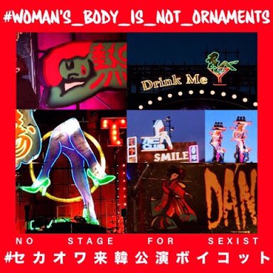 自国のKPOPアイドルの過度な露出はOKで、SEKAI NO OWARIの女性のイラストはダメらしい(笑そもそも韓国なんて行くなよ。