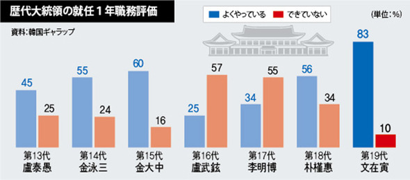 韓国の大統領には権力が集中するからメディアも権力を持つ大統領を賞賛して支持率を操作してるんだろう。
