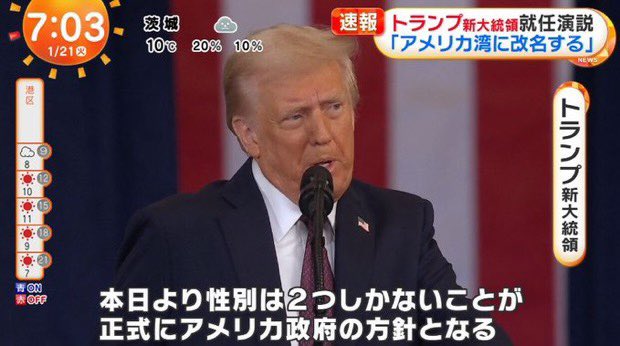 米国のトランプ大統領は20日に性別は男性と女性の二つで変更できないとする大統領令に署名し、バイデン前政権下のLGBTQ+(性的少数者)の関連施策を撤回した。