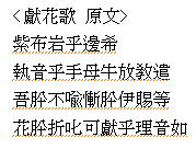신라 성덕왕 때 純貞公이란 사람이 강릉 태수로 부임하여 그의 부인인 水路夫人과 함께 강릉에 가던 도중, 해변에서 점심을 먹는데, 절벽 위에 철쭉꽃(䕽花)이 피어있는 걸 水路夫人이 발견했다. 그리고나서 水路夫人이 "누가 따올래?"했는데 侍從들이 하나같이 "사람이 갈 수 있는 데가 아닙니다."라고 한다. 그때 암소를 끌고 가고 있던 노인이 그 얘길 듣곤 그 꽃을 꺾어서 노래와 함께 바치는데, 이 노래가 바로 '獻花歌'이다>>19