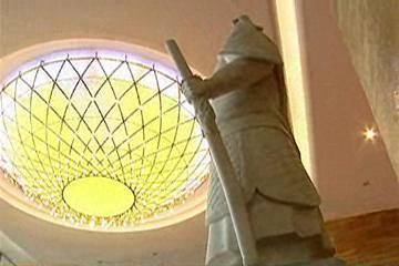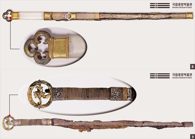 西域系遺物は30点余りが展示される。最も注目される遺物は、1973年慶州鷄林路(ケリムノ)古墳で出土した装飾宝剣だ。金製の刃物の取っ手に赤いメノウをあしらって太極模様などで飾られたこの遺物は、当時のペルシャの装飾デザイン要素が明確にあらわれ、韓国の代表的な西域系遺物と評価される。イラン博物館関係者も必ず展示したい遺物として最初にこの宝剣を名指しした程に関心が大きいという。