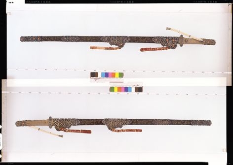 正倉院のは「金銀鈿荘唐大刀」で、唐大刀は唐風の大刀を意味し、外装に豪華な装飾が施され、儀式用とされる。環頭大刀ね