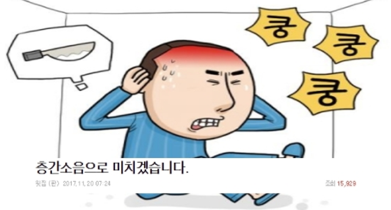私層間騒音の書き込みサイトで、ネイバーカフェに加入して閲覧者してみると、”集合住宅での生活は容易でなく精神疾患を患って生活している方を多数確認しました。