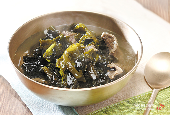 한국의 미역국에는 '고기', '전복'등이 추가된다.