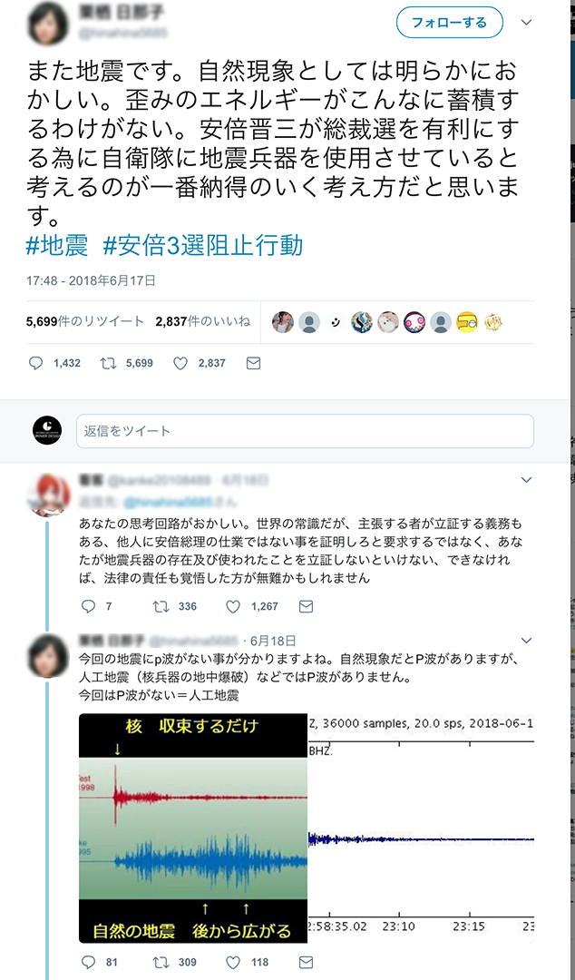 「地震は安倍が起こした人工地震」