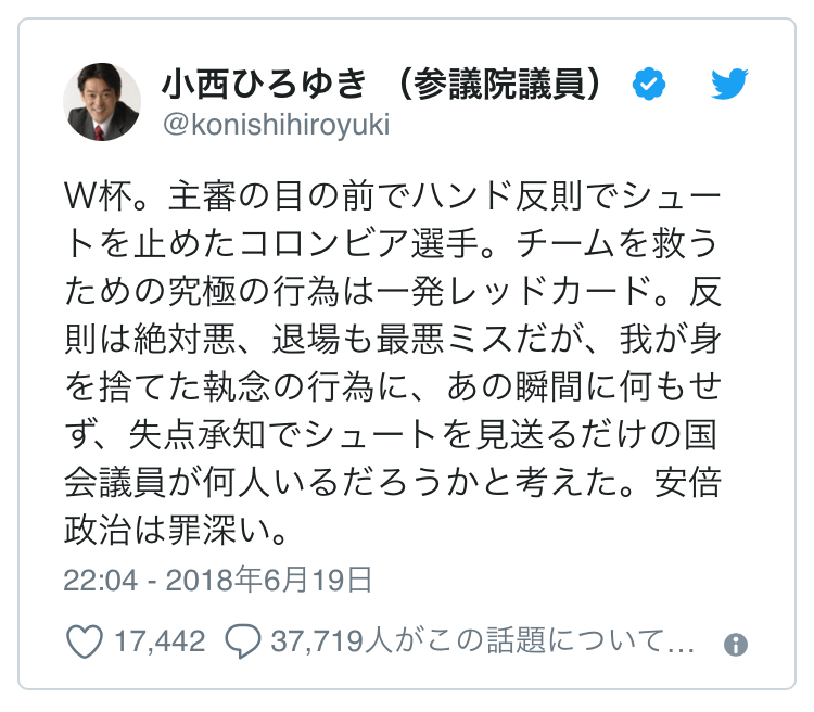 安定の小西だな。亡命はいつするんだ?政治家は発言に責任持てよ。