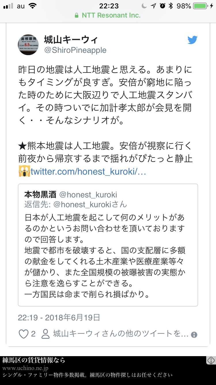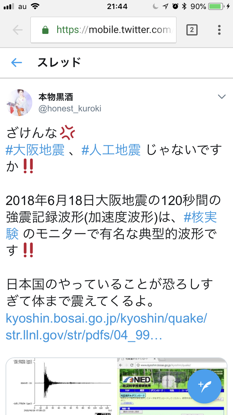 全くタイミング関係なくてビックリするふむふむ、安倍ちゃんが辻元の地元狙い撃ちで人工地震起こしただと。