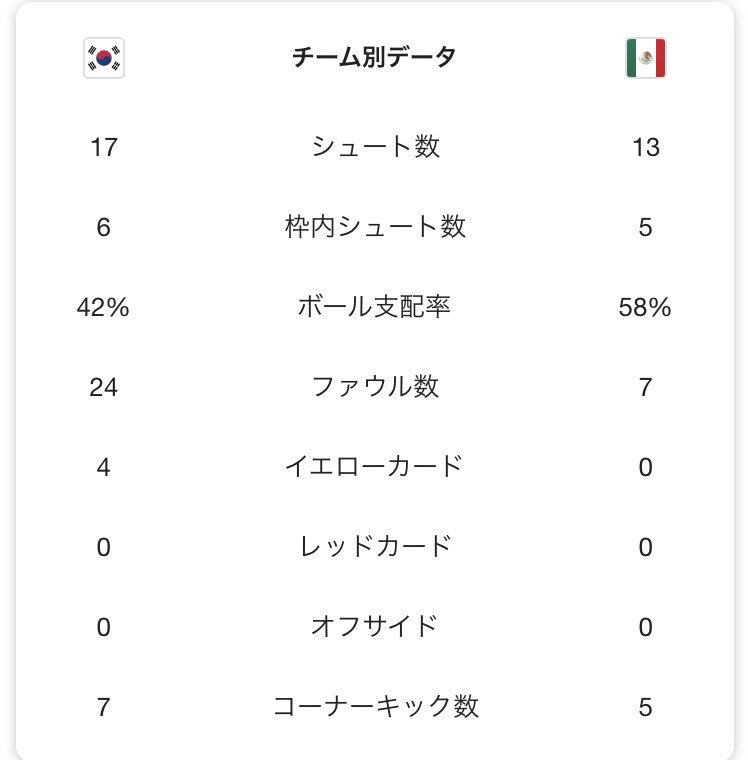 文在寅が観覧に来たから、張り切ってテコンサッカーを披露してテコンサッカーは世界一!と、自慢のエラを張りたかったのかな?この数字は、2試合分のデータのはず(だよね?)