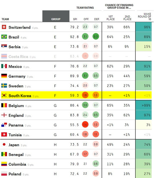 いける!いける!멕시코가 스웨덴을 2점차로 승리한다면, 한국은 독일을점수차에 상관없이 이기기만 하면 된다. 이것이 ‘그나마’ 가장 쉬운 진출 방법이다.