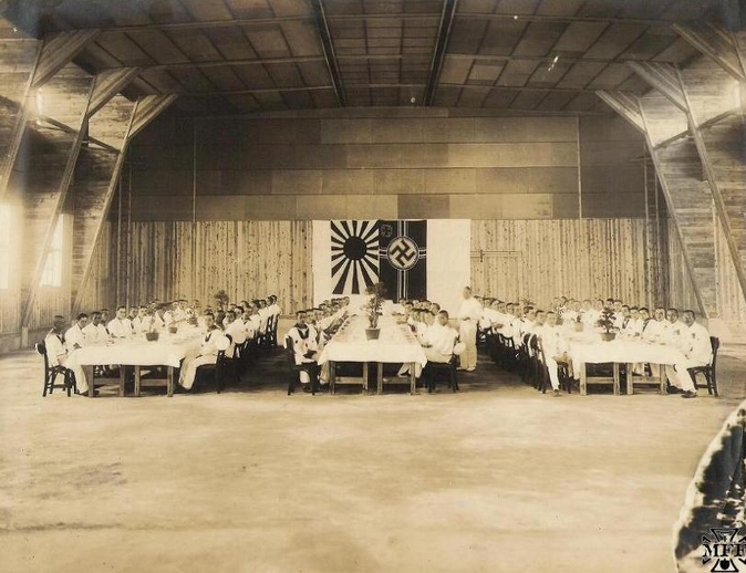 日本占領下の南方に、ドイツ海軍の艦艇が来てその時の歓迎会かなんかかな。