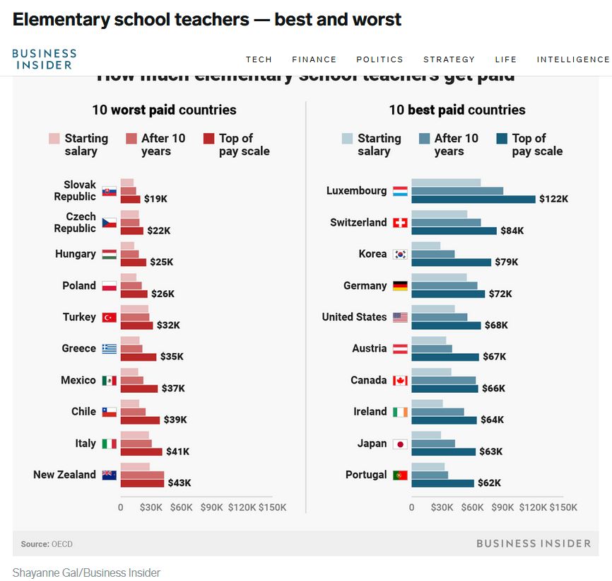 세계 국가, 교사 연봉 비교