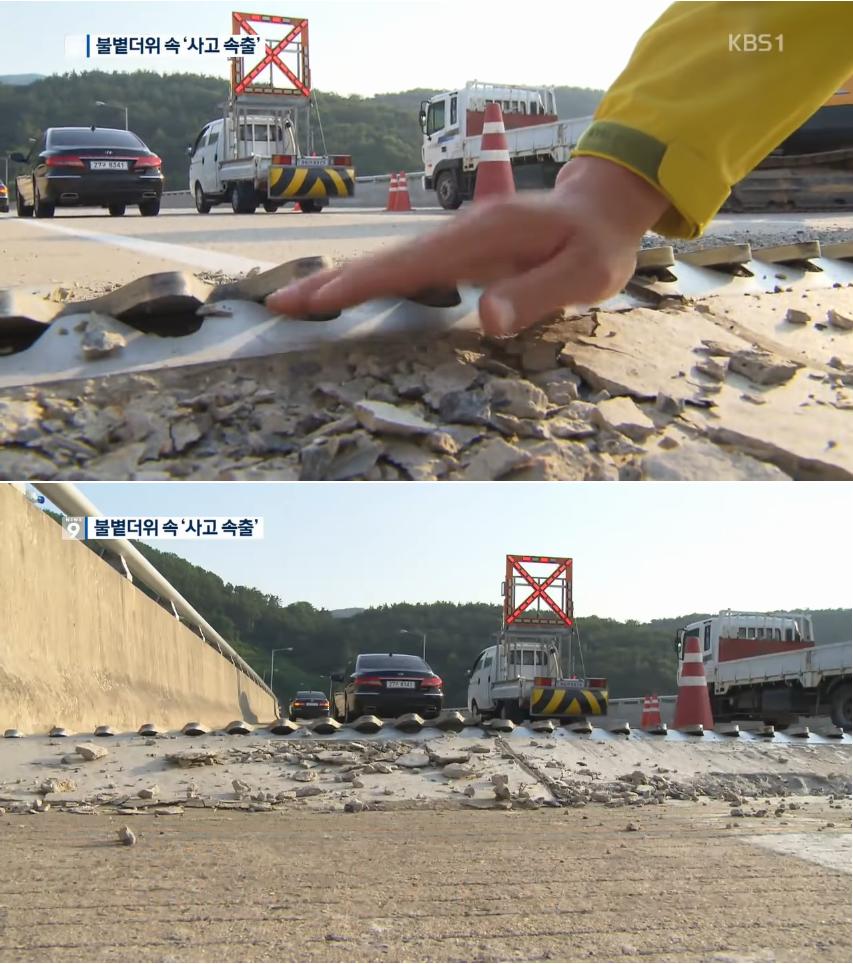 부산-울산 고속도로 차량 수십 대 파손..."더위에 이음새 솟아 올라"