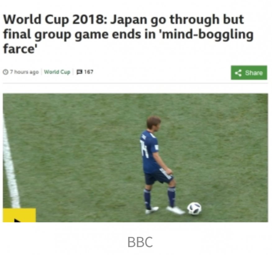 ”これは恥以外何物でもない最後の日本がやらかした真似はワールドカップで誰も見たくない物だ、とても下らない試合をした”