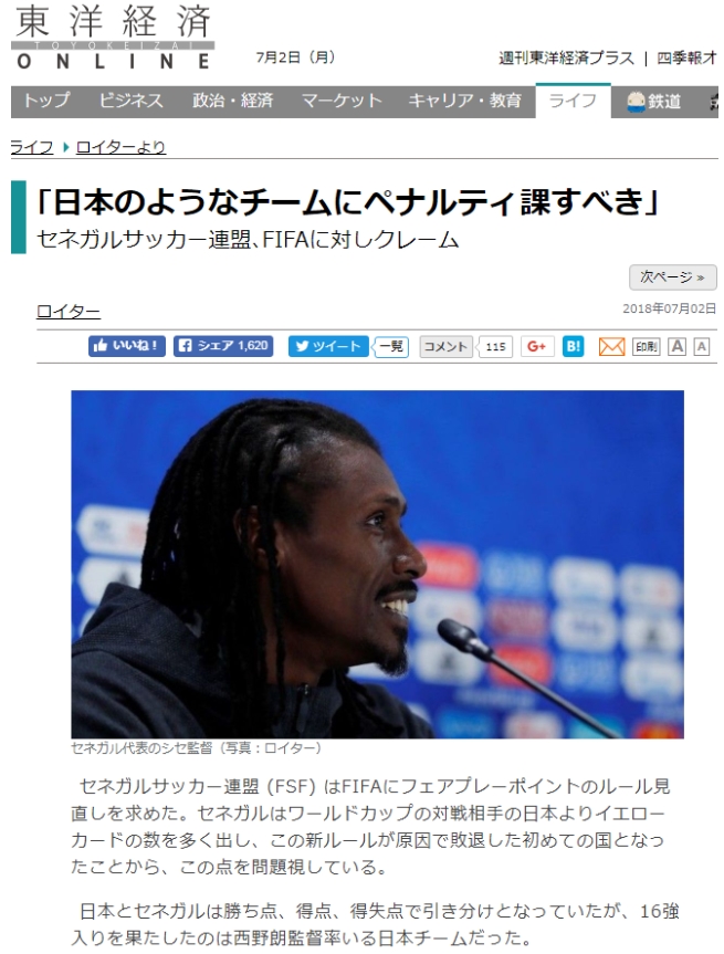 세네갈 축구협회는 "FIFA가 새로 도입한 페어플레이 점수는 문제를 해결하기는커녕 새로운 문제를 만들었다"고 개정을 촉구했다.일본인은 청소나 열심히 할 것