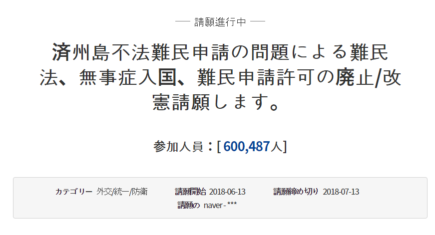 https://www1.president.go.kr/petitions/289381?page=6少し前のソウル市長のコメントから真逆で6月1日には難民受け入れ中止ですから。