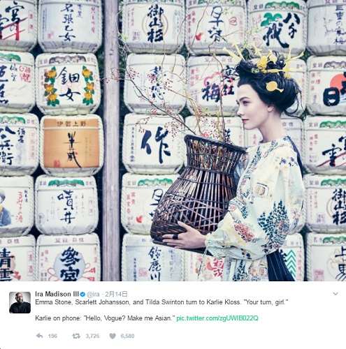 白人のモデルに日本風の芸者の格好をさせた行為が
