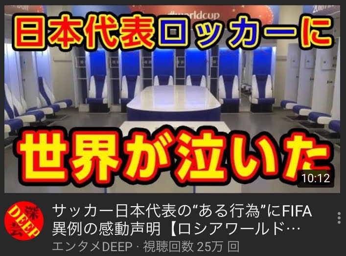 ロッカールームの清掃については、国際サッカー連盟(FIFA)ゼネラルコーディネーターを務めるプリシラ・ジャンセンズさんが試合後、日本代表のロッカールームを撮影した写真をツイッターで投稿。「こちらはベルギー戦で94分間の戦いに敗れた後の、日本代表のロッカールームです。彼らはスタジアムのファンに感謝した後、ベンチとロッカールームを全て掃除して、取材対応までした。そしてロシア語で“ありがとう”」と書いたメモまで残した。全てのチームの誇りであり、一緒に仕事が出来たことを誇りに思う」と称賛のメッセージをツイートした。