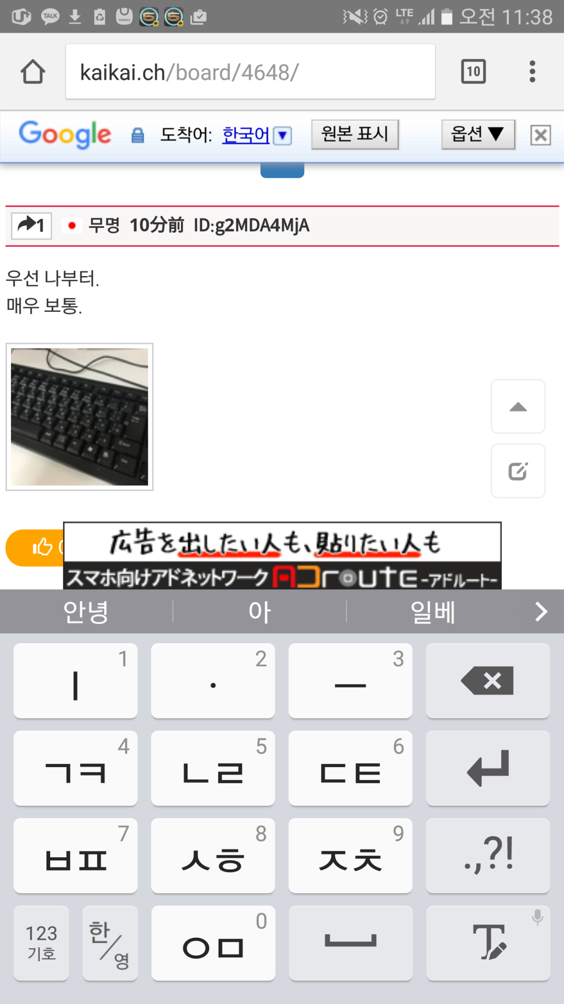 근데 천지인이 낫지 않나 저 키보드 크기 작아서 다른 자판 겁나 눌리던데俺のキーボードF5キーだけよく割れるんだが(。-_-。)