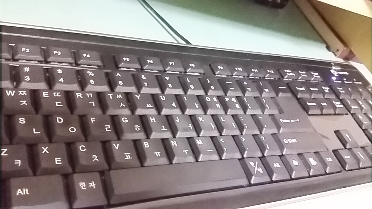 한국의 키보드가 영문 키보드와 다른 점은, space bar의 오른쪽에 '한/영'key와 '한자'key가 추가된 것 밖에 없다.写真は無いけれど、104配列を基本としたテンキーレス。