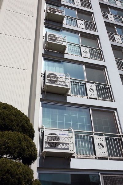 한국의 경우 '에어컨 실외기'가 건물 외벽에 부착되어 있고