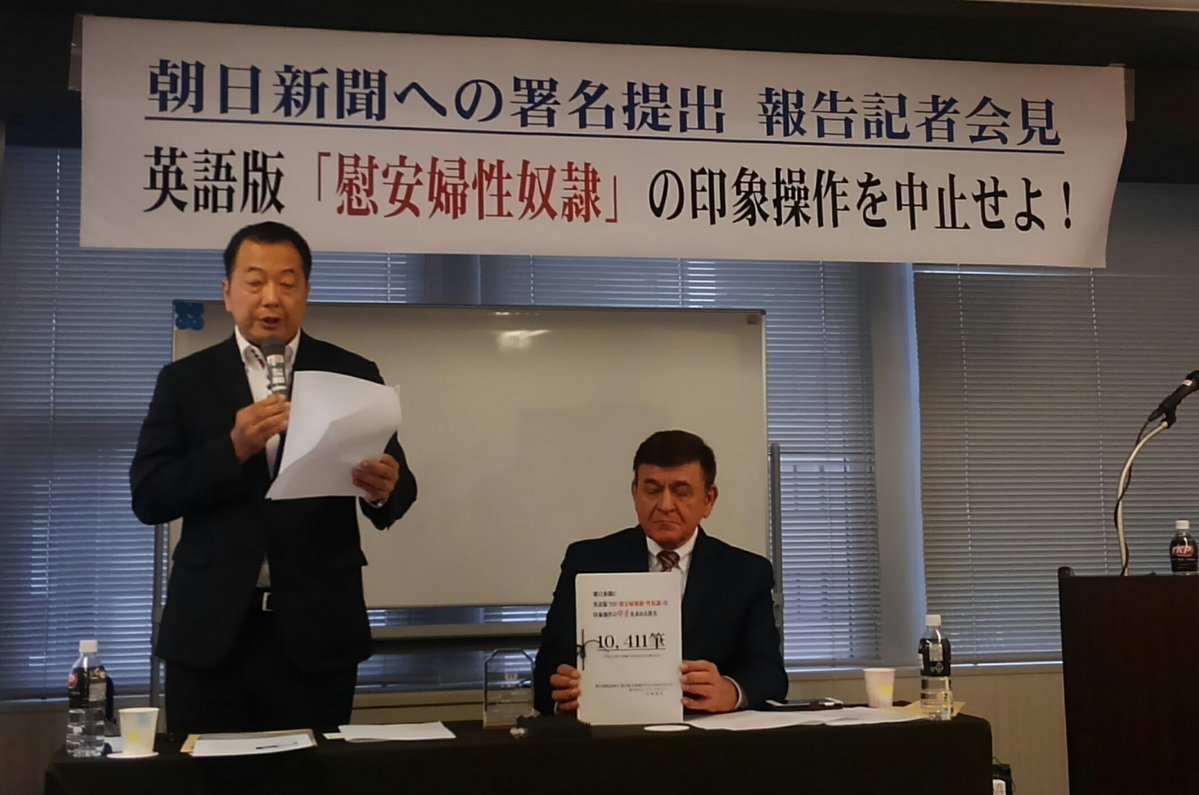 私は今年2月、オーストラリアで慰安婦像設置を阻止したAJCN代表の山岡鉄秀氏とともに、「朝日新聞英語版の慰安婦印象操作中止を求める有志の会」を立ち上げ、前記表現(forced to provide sex)を今後使用しないことなどを朝日に求める署名を募集した。6日、築地の朝日新聞東京本社に約1万400人の署名を届ける。