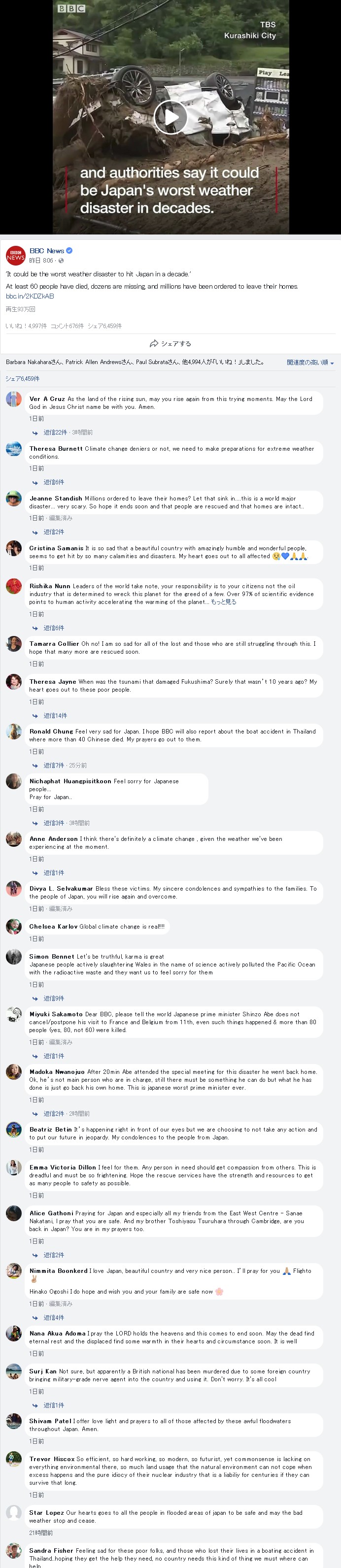 豪雨被害、世界中から悲しみと励ましの声が殺到
