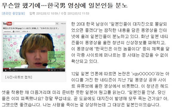 実際、日本の豪雨を伝える報道のコメントウィンドウは嘲弄と非難が乱舞する。あるオンラインコミュニティには「日本はお金も多いのに、今度はバカのように支援するのをやめよう」とし「申し訳ないが憐憫さえ感じない」という内容の書き込みが掲載されたりもした。さらにあるヌリクン(ネットユーザー)は「日本列島が今回の豪雨で沈没してほしい」という露骨な非難をした。