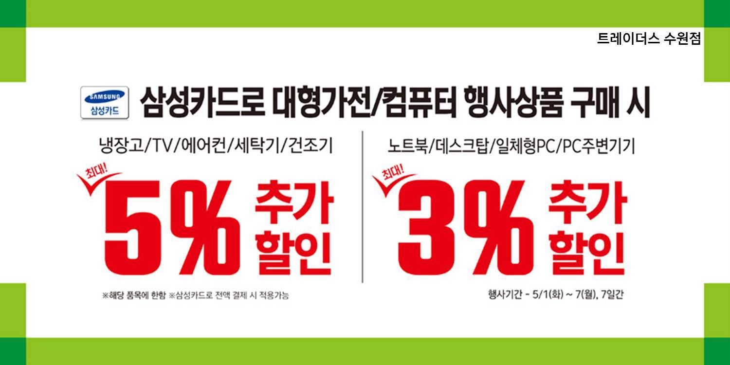 '삼성의 카드로 대형가전/컴퓨터 행사제품 구매시'