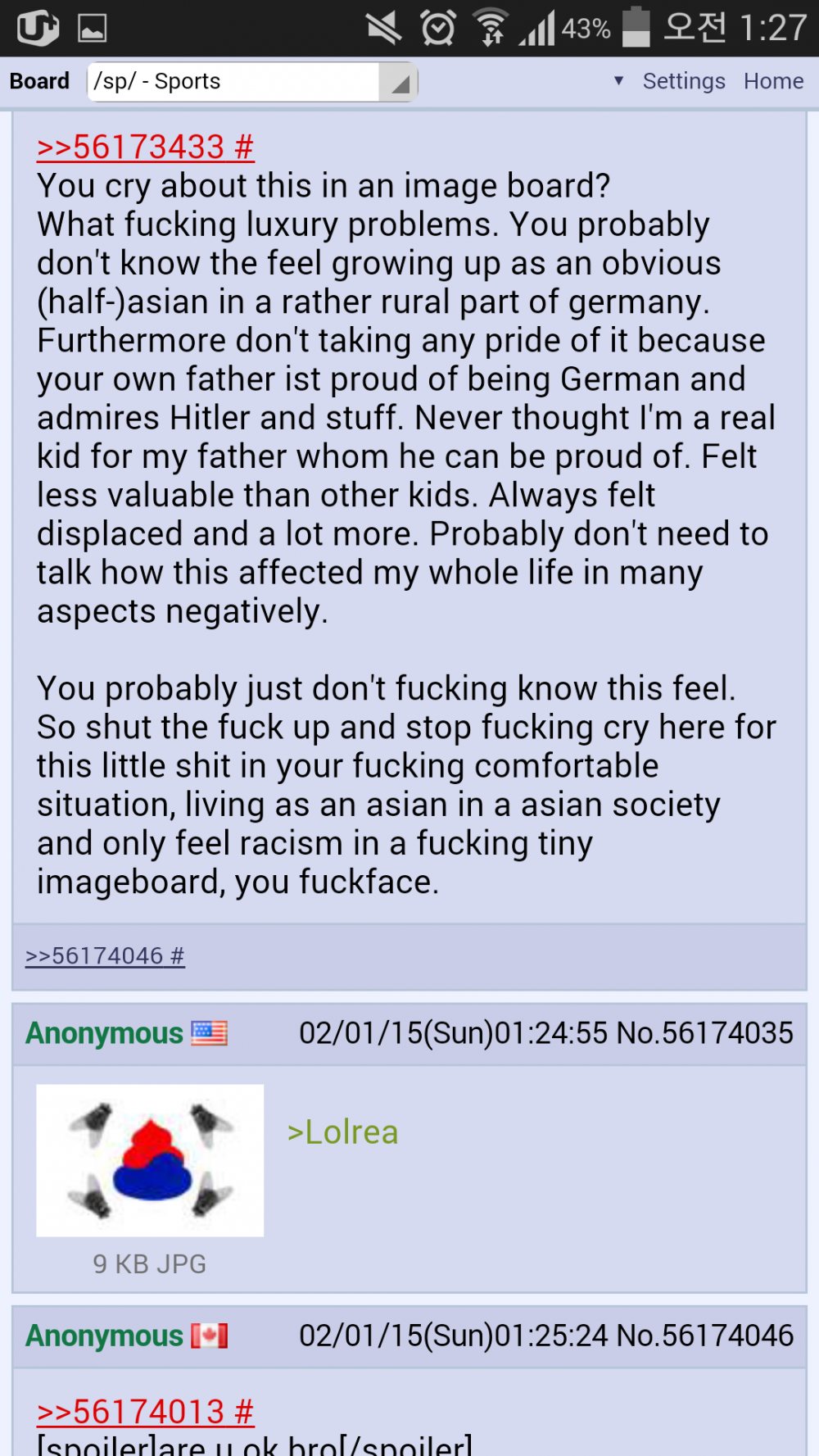 君、コテに属国旗ついてるよ>>2が国旗なのかどうかという話は置いといて、まぁ、あまりいい画像とは言えないな。
