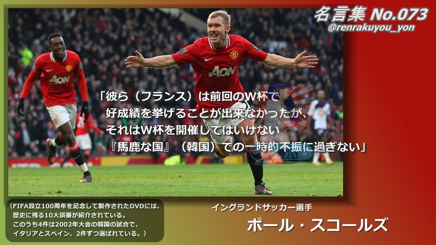 スコールズは英国のサッカー専門雑誌「フォーフォートゥー」(Four-four-two)来年1月号に載せたインタビューで「2004年欧州サッカー選手権大会(ユーロ2004)の優勝候補はどのチームだと思うか」との質問に、フランスを挙げ「フランスは(ユーロ2000に続き)もう一度優勝できるチーム」と語った。 彼は続けて「彼ら(フランス)は前回のW杯で好成績を挙げることが出来なかったが、それはW杯を開催してはいけない『馬鹿な国』での一時的不振に過ぎない(They didn’t do so well at the World Cup、but that was just a blip in a stupid country where the World Cup should never have been played)と話した。朝鮮人はキムチ悪いしな