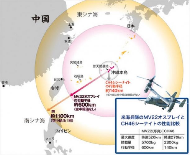 チヌークだと遠くまで飛べないし遅い積載力もチヌークとオスプレイじゃ段違いだしね。