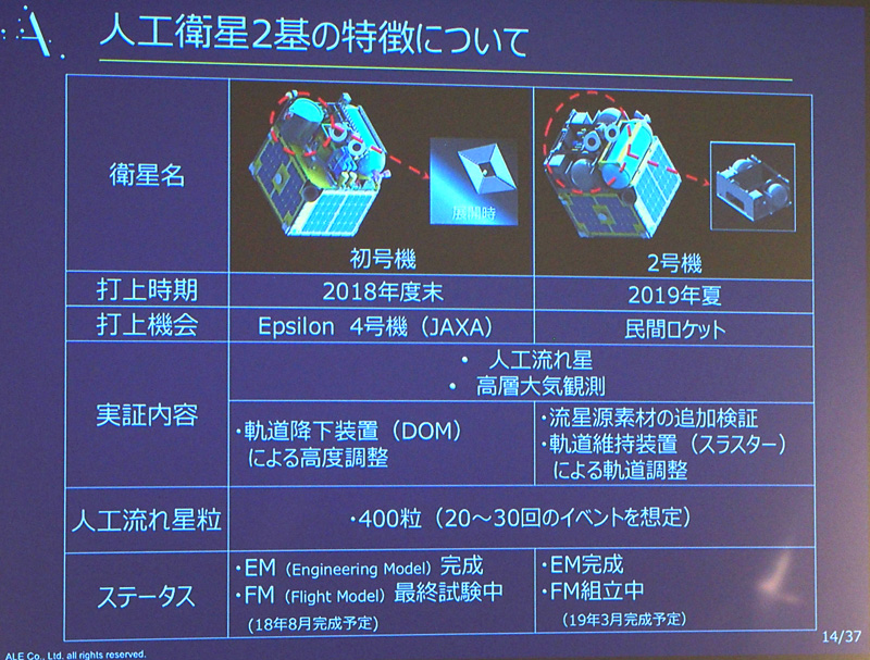 人工流れ星…森ちゃんがのりのりだったはず!東京五輪には間に合えば3号機で、おそらくは2号機でデモンストレーション的なイベントに