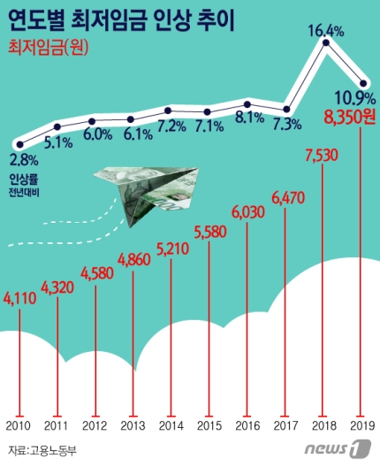 한국 최저임금, 세계 4위, 내년엔 3위...