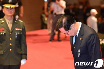 キム・ヒョンジョン青瓦台国防改革秘書官は同日、殉職した海兵隊員の告別式に出席するために海兵隊第1師団ソール管を訪れた。