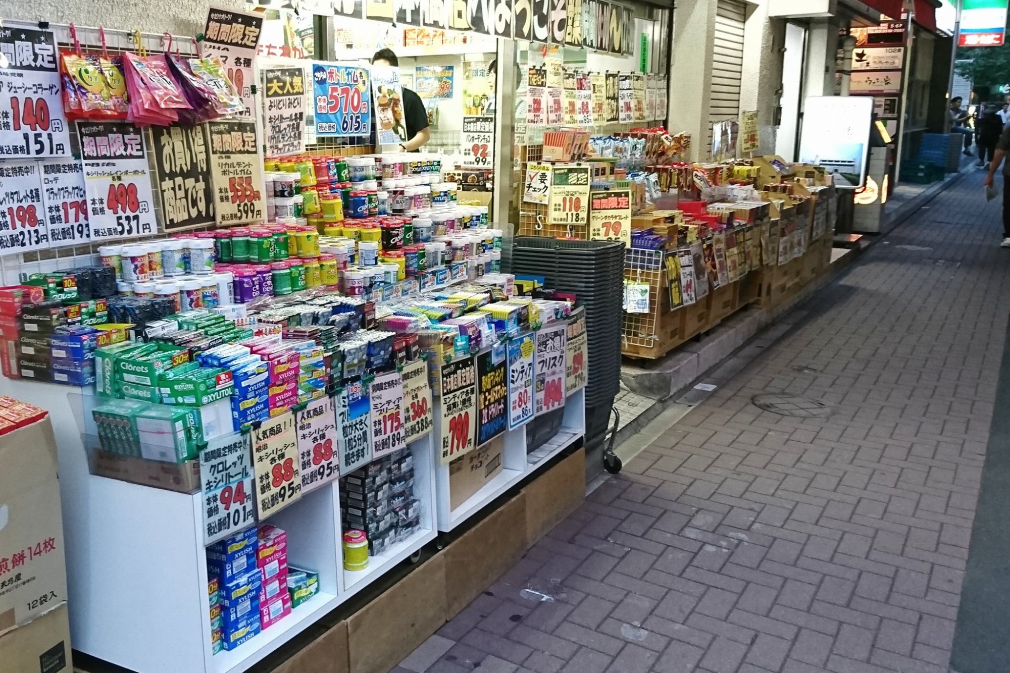 韓国なら建物から出て、道のインターロック部分まで商品並べてるよ。